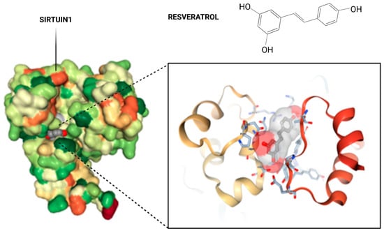 - Cao, D.; Wang, M.; Qiu, X.; Liu, D.; Jiang, H.; Yang, N.; Xu, R.-M. Structural Basis for Allosteric, Substrate-Dependent Stimulation of SIRT1 Activity by Resveratrol. Genes Dev. 2015, 29, 1316–1325. [Google Scholar] [CrossRef] [PubMed]
