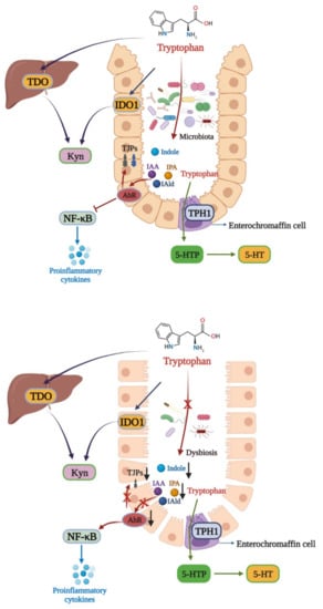 - Agus, A.; Planchais, J.; Sokol, H. Gut Microbiota Regulation of Tryptophan Metabolism in Health and Disease. Cell Host Microbe 2018, 23, 716–724. [Google Scholar] [CrossRef]