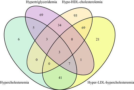 Venn diagram of sample distribution of four types of dyslipidemia subjects.