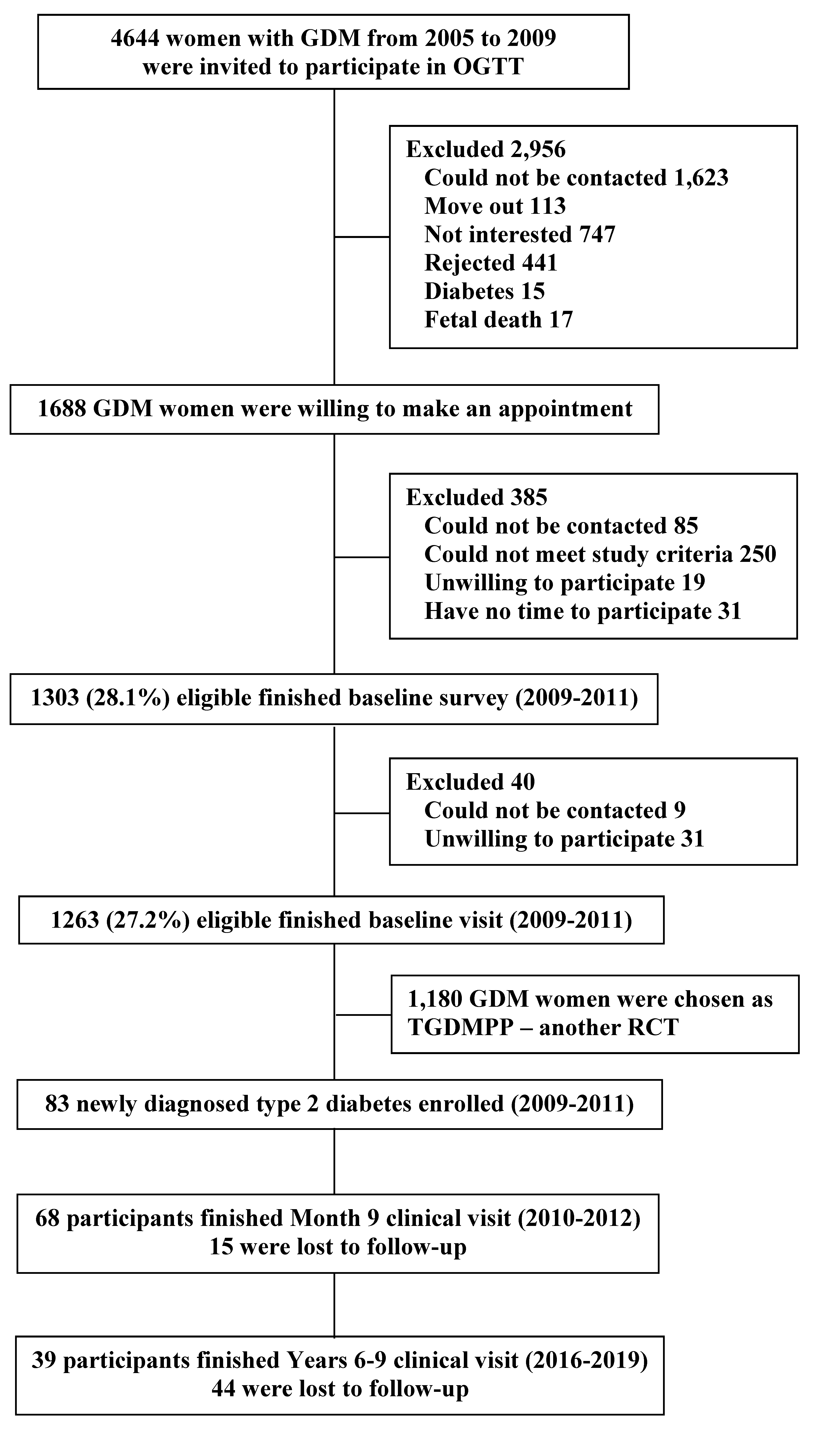 - Hu, G.; Tian, H.; Zhang, F.; Liu, H.; Zhang, C.; Zhang, S.; Wang, L.; Liu, G.; Yu, Z.; Yang, X.; et al. Tianjin Gestational Diabetes Mellitus Prevention Program: Study design, methods, and 1-year interim report on the feasibility of lifestyle intervention program. Diabetes Res. Clin. Pract. 2012, 98, 508–517. [Google Scholar] [CrossRef]