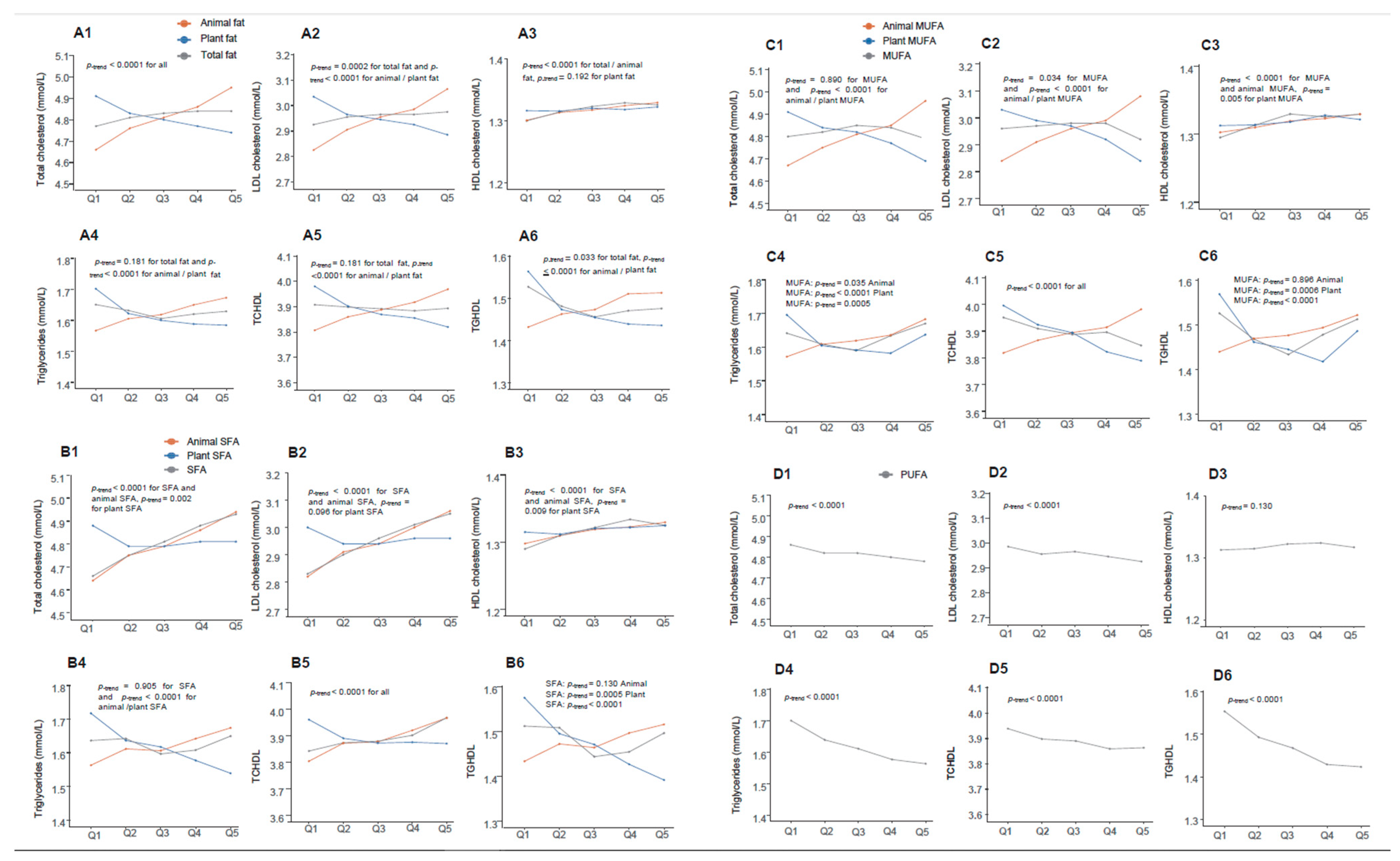 3.2. The Relationship of Dietary Fats and Blood Lipids