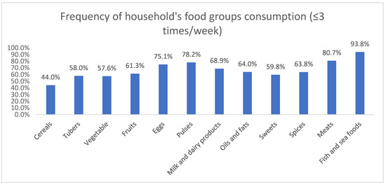 Frequency of foods group consumption (≤3 times/week) among participants’ households.