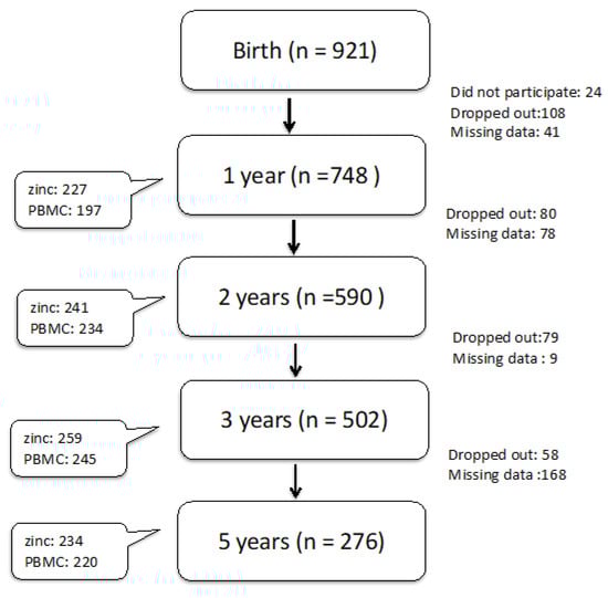 APA StyleLiao, S.-L., Hua, M.-C., Tsai, M.-H., Su, K.-W., Lin, C., Yao, T.-C., Chen, L.-C., Yeh, K.-W., Huang, J.-L., & Lai, S.-H. (2022). Association between Serum Zinc and Toll-like-Receptor- Related Innate Immunity and Infectious Diseases in Well-Nourished Children with a Low Prevalence of Zinc Deficiency: A Prospective Cohort Study. Nutrients, 14(24), 5395. https://doi.org/10.3390/nu14245395