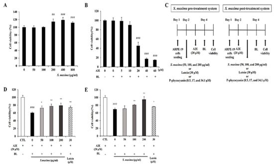 3.1. S. maxima Inhibited Cell Death Caused by A2E Treatment and BL Exposure