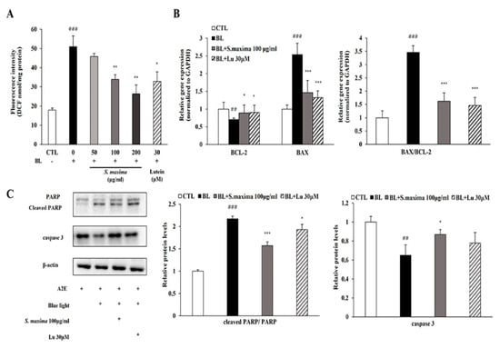 3.3. S. maxima Regulated the Apoptosis Caused by BL in A2E-Laden ARPE-19 Cells