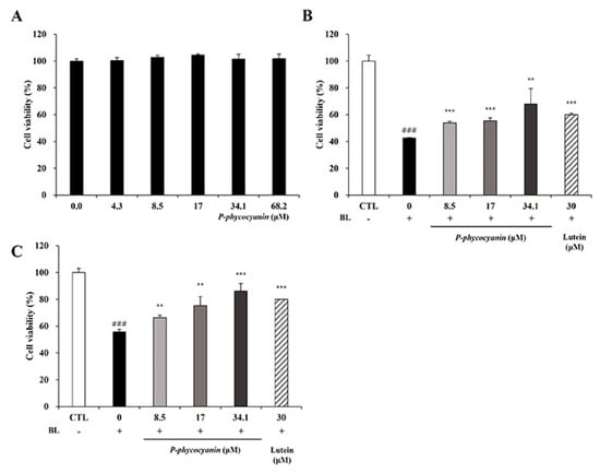 - Romay, C.; Armesto, J.; Remirez, D.; González, R.; Ledon, N.; Garcia, I. Antioxidant and anti-inflammatory properties of C-phycocyanin from blue-green algae. Inflamm. Res. 1998, 47, 36–41. [Google Scholar] [CrossRef]