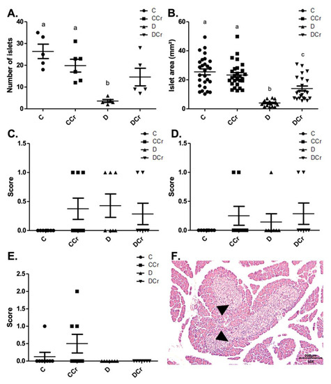 3.2. Morphological Analyses of the Pancreatic Tissue