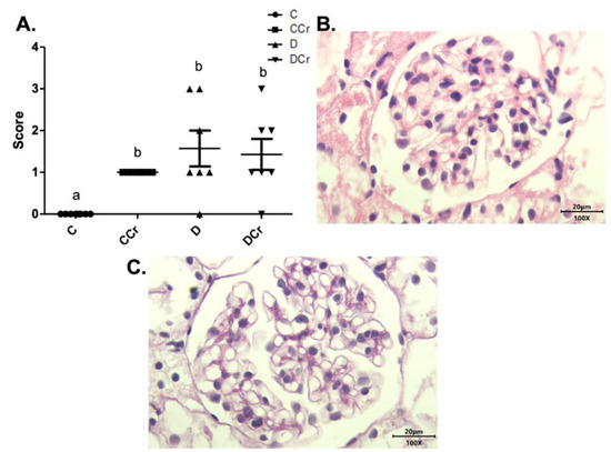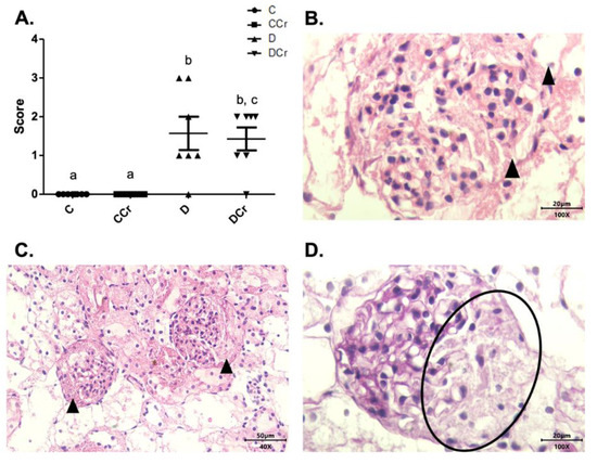 Chicago/Turabian StyleGonçalves, Meline Gomes, Matheus Anselmo Medeiros, Licyanne Ingrid Carvalho de Lemos, Lucia de Fátima Campos Pedrosa, Pedro Paulo de Andrade Santos, Bento João Abreu, and João Paulo Matos Santos Lima. 2022. "Effects of Creatine Supplementation on Histopathological and Biochemical Parameters in the Kidney and Pancreas of Streptozotocin-Induced Diabetic Rats" Nutrients 14, no. 3: 431. https://doi.org/10.3390/nu14030431