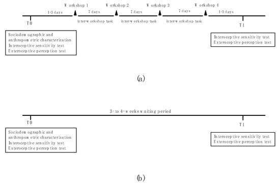 The increase in interoceptive sensitivity observed with the heartbeat tracking task is a very positive result of this study. In the literature, the variation of this parameter is evaluated after very diversified interventions, both due to the characteristics of the intervention, which include breathing exercises [53], body scanning practices [34,53,54], biofeedback techniques [34], power posing techniques [33], self-focused attention [55], among others, as well as the duration of these interventions, which range from occasional practices of a few minutes duration [34,55] to more intense interventions, with daily practices [33], or over several weeks [54], which is probably related to the great variability of the results found.