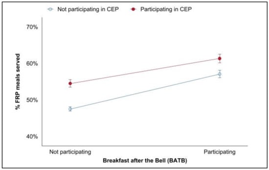 Despite the demonstrated benefits of school meals, a substantial number of FRP-eligible students do not partake, especially in school breakfast. With significant barriers for students accessing school breakfast through traditional meal service mechanisms, BATB approaches provide schools with additional options to increase access and participation. Nevertheless, there is little research that has looked longitudinally at statewide BATB adoption and considered meals served to those who can most benefit—FRP-eligible students. Using both descriptive and inferential approaches, our study finds that CEP is associated with BATB adoption and that both are related to increased FRP breakfast participation. From our conditional DiD analysis, we find that BATB adoption alone accounts for a 1.4-percentage-point increase in school breakfasts served. These findings build on previous studies that looked independently at CEP or BATB, and an increasing amount of research that uses longitudinal approaches (e.g., DiD) alongside more traditional descriptive analyses.