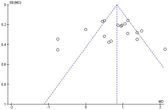 Funnel plot of the adjusted association between tmax and food (SE, standard error; MD, mean difference).