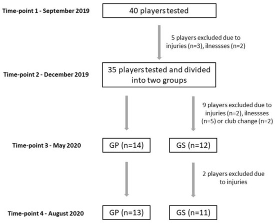 Despite numerous strengths and novelty delivered in this research, some limitations should be indicated as well. First of all, the research was not conducted in agreement with initial study design. The T3 measurements were originally scheduled for half of March, immediately after the supplementation period. However, due to the COVID-19 lockdown occurrence, it was impossible to complete all the tests. Secondly, the sample size after dividing participants into GS and GP could be considered as a limitation as well. Larger number of involved players would help to increase the power of statistical analysis. Nevertheless, soccer teams usually include no more then 25–30 players. Therefore, increasing the sample size seems to be difficult in such research.