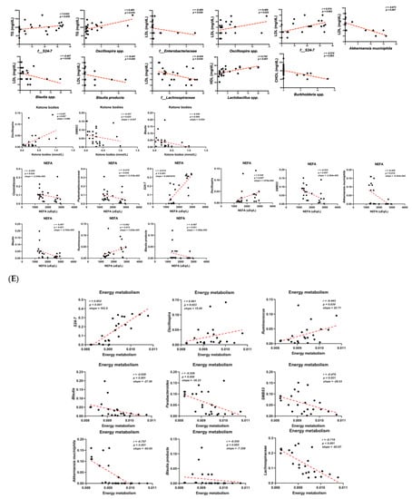 In short, a combined supplement of three probiotic strains significantly increased the abundance of Akkermansia mucinphila but decreased energy metabolism compared with obese (CH) rats. The abundances of energy-metabolism-related gut bacteria were positively correlated with serum TG, LDL, NEFA, and ketone body levels, while the abundance of Akkermansia mucinphila was negatively correlated with serum LDL and NEFA levels. Additionally, a negative correlation of the abundance of Akkermansia mucinphila with energy metabolism was observed. Therefore, a combined supplement of three probiotic strains could increase the abundance of Akkermansia mucinphila to reduce serum NEFA levels potentially mediated through its negative regulation of energy metabolism.