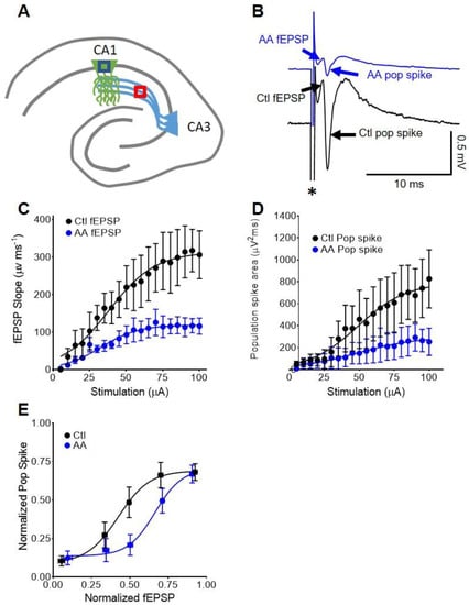 3.4. In CA1, AA Augments Somatic fEPSP and Population Spike Coupling