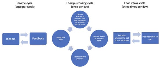 Three cycles of agents’ decision-making process for food purchasing and consumption.