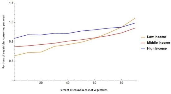 Agent-based model simulated response to discounts in the cost of vegetables by income level.