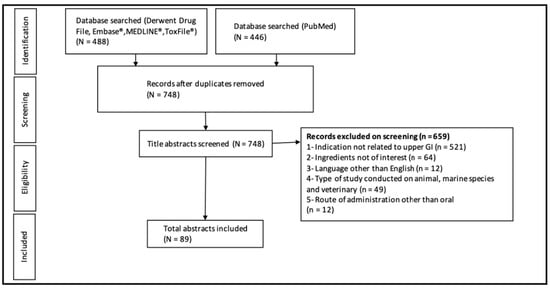 To better understand how these nutritional ingredients may impact upper GI health, a literature search with predefined search criteria was conducted in June 2021 using the Embase, Medline, Derwent drug file, Pubmed, and ToXfile databases. MeSH (Medical Subject Headings) terms and keywords for nutritional ingredients as well as common upper GI complaints and symptoms were used in the search string (Table 3). The literature search was conducted with a time limit of 15 years (2006).