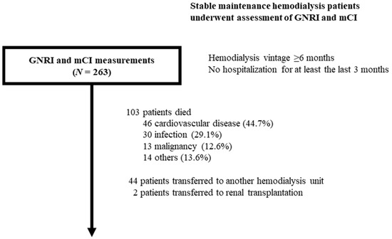 - Yajima, T. Is modified creatinine index really superior to geriatric nutritional risk index for predicting malnutrition and clinical outcomes in hemodialysis patients? J. Ren. Nutr. 2022, S1051–S2276. [Google Scholar] [CrossRef]