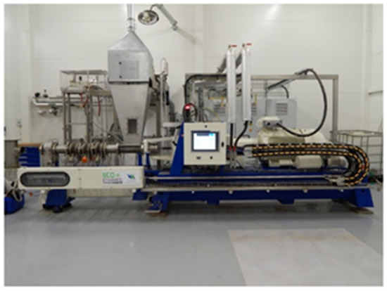 Grape polyphenols are usually extracted from plant material (grape canes and roots) using traditional organic solvent methods due to their strong polarities. Solvents such as ethanol, methanol, acetone, and ethyl acetate have been widely used in conventional solid-liquid extraction processes. However, the excessive use of organic solvents generates toxic wastes and has therefore harmful environmental and human health impacts. In addition, traditional extraction methods are both time consuming and labor intensive. For this reason, an eco-efficient process was designed to avoid the use of organic solvents and repeated extraction procedures. This eco-efficient process is based on the use of reactive subcritical water extrusion in a Clextral Evolum EV 53 extruder (Figure 1).