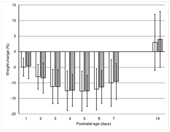 Most interestingly, the groups were also similar and parallel in their postnatal changes in body weight (Figure 3), including a nadir at a postnatal age of 4–5 days (Table 2). Further, there were no differences between the two groups in the incidence of hyper- and hyponatremia (Table 3) and the groups had a similar incidence of IVH, PDA, and BPD (Table 3).