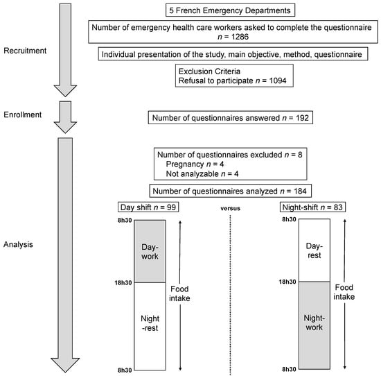 APA StyleBouillon-Minois, J.-B., Thivel, D., Croizier, C., Ajebo, É., Cambier, S., Boudet, G., Adeyemi, O. J., Ugbolue, U. C., Bagheri, R., Vallet, G. T., Schmidt, J., Trousselard, M., & Dutheil, F. (2022). The Negative Impact of Night Shifts on Diet in Emergency Healthcare Workers. Nutrients, 14(4), 829. https://doi.org/10.3390/nu14040829