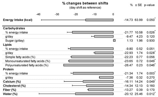 - Morikawa, Y.; Miura, K.; Sasaki, S.; Yoshita, K.; Yoneyama, S.; Sakurai, M.; Ishizaki, M.; Kido, T.; Naruse, Y.; Suwazono, Y.; et al. Evaluation of the Effects of Shift Work on Nutrient Intake: A Cross-Sectional Study. J. Occup. Health 2008, 50, 270–278. [Google Scholar] [CrossRef][Green Version]