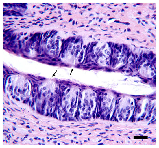 Representative image of CV Slice. A representative image showing the morphology of a pore (black arrows). Photomicrograph adjusted for brightness and contrast. Scale bar represents 25 µm.