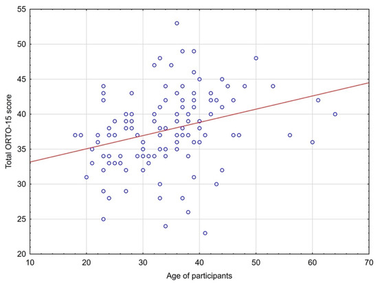 3.4. The Relationship between the Age of Study Participants and the ORTO-15 Questionnaire Total Score