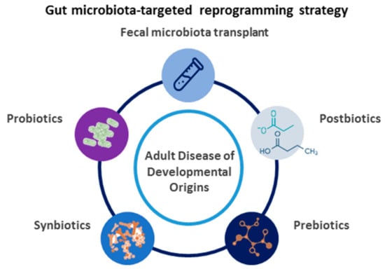 Regardless of recent advances in developing potential reprogramming strategies targeting gut microbiota for adult disease of developmental origins, none of them have been translated in human trials. The literature is missing a greater understanding of whether the current uses of probiotics or prebiotic-rich food in pregnant women may also alter gut microbiota and derived metabolites to prevent their children from chronic diseases in adulthood.