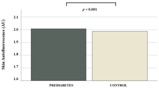 Plot displaying the skin autofluorescence value according to the presence prediabetes.