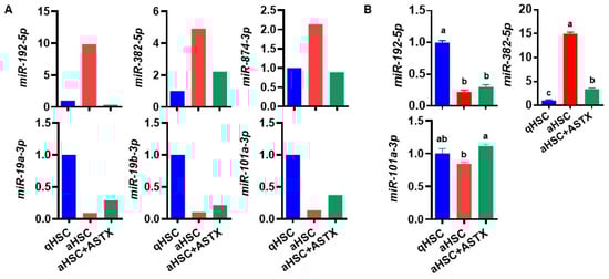 3.2. miRNAs Were Identified Whose Expression Was Altered in aHSC Compared to qHSC, Which Was Attenuated by ASTX