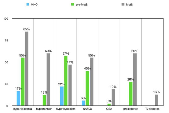 | Disorder | pre-MetS n = 40 | MetS n = 47 | MHO n = 18 | X2 | p |