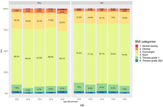 (a) IOTF BMI categories by sex and age; (b) Body composition by IOTF BMI categories, sex, and age.