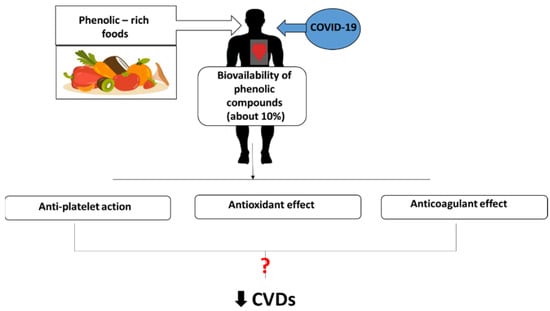 A summary of the relationship between dietary phenolic compounds with antiviral potential and CVDs, and their possible role in supporting protection against CVDs in patients with COVID-19 is given in Figure 1.