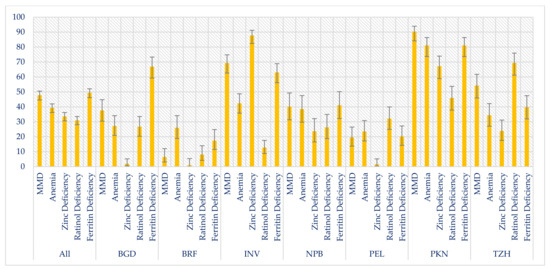 3.2. Prevalence of Multiple Micronutrient Deficiencies