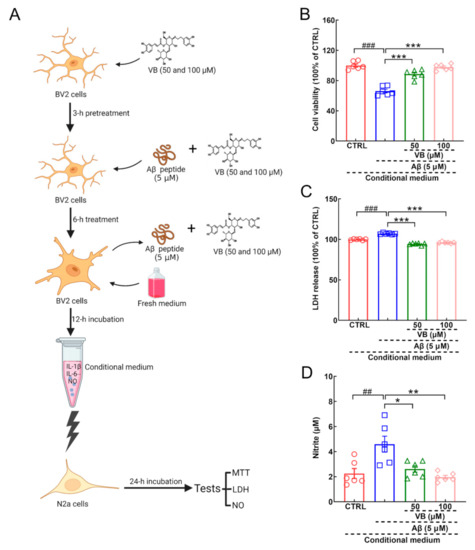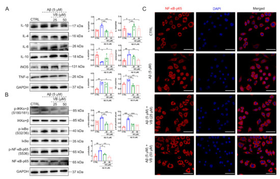 3.4. VB Exerts Neuroprotection in Aβ1-42-Stimulated N2a Cells by Inhibiting Neuroinflammation