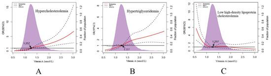 Yu, L.; Wang, Y.; Yu, D.; Zhang, S.; Zheng, F.; Ding, N.; Zhu, L.; Zhu, Q.; Sun, W.; Li, S.; et al. Association between Serum Vitamin A, Blood Lipid Level and Dyslipidemia among Chinese Children and Adolescents. Nutrients 2022, 14, 1444. https://doi.org/10.3390/nu14071444
