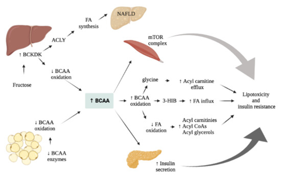 - Herman, M.A.; She, P.; Peroni, O.D.; Lynch, C.J.; Kahn, B.B. Adipose Tissue Branched Chain Amino Acid (BCAA) Metabolism Modulates Circulating BCAA Levels. J. Biol. Chem. 2010, 285, 11348–11356. [Google Scholar] [CrossRef] [Green Version]