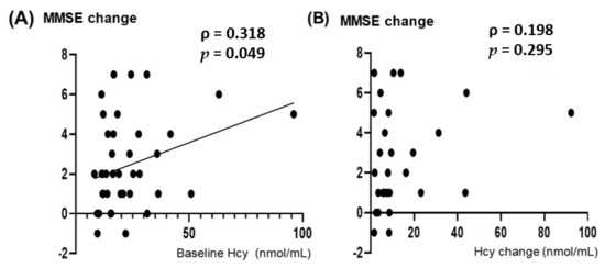3.3. Changes in Homocysteine Levels and MMSE Score by Vitamin B12 Supplementation