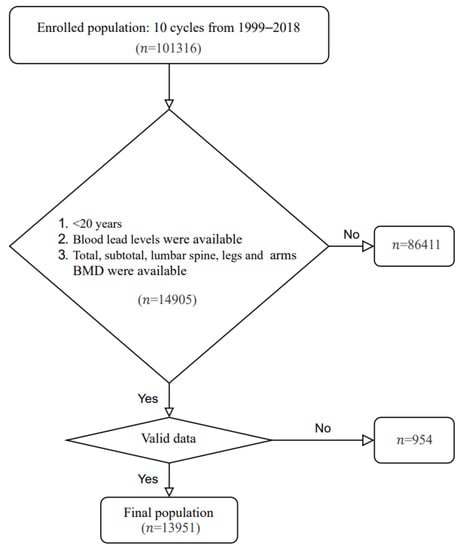 Li T, Xie Y, Wang L, Huang G, Cheng Y, Hou D, Liu W, Zhang T, Liu J. The Association between Lead Exposure and Bone Mineral Density in Childhood and Adolescence: Results from NHANES 1999–2006 and 2011–2018. Nutrients. 2022; 14(7):1523. https://doi.org/10.3390/nu14071523