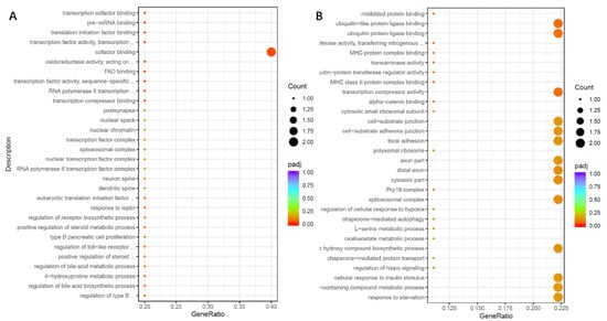 Transcriptome analysis showed that the genes associated with the cellular binding protein factor pathway (SERF1A and MARK2P17) (Table S1) were significantly up-regulated when the organoids were infected by K. pneumoniae, and were significantly down-regulated when they were co-cultured with 2′-FL (Figure 9A). The expression of pathway genes (TIRB3, ADM2, PCK2) (Table S1) that bind to ubiquitin-like protein ligase and transcriptional corepressor activity were significantly down-regulated after infection by C. perfringens, and significantly up-regulated after 2′-FL treatment (Figure 9B). It is suggested that there may be different mechanisms for different strains to infect organoids and prevent 2′-FL from adhering to organoids.