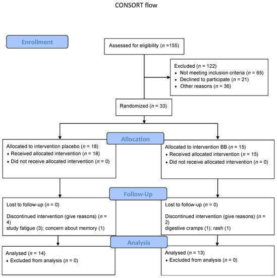 - Miller, M.G.; Hamilton, D.A.; Joseph, J.A.; Shukitt-Hale, B. Dietary blueberry improves cognition among older adults in a randomized, double-blind, placebo-controlled trial. Eur. J. Nutr. 2018, 57, 1169–1180. [Google Scholar] [CrossRef]