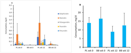 - Krikorian, R.; Kalt, W.; McDonald, J.E.; Shidler, M.D.; Summer, S.S.; Stein, A.L. Cognitive performance in relation to urinary anthocyanins and their flavonoid-based products following blueberry supplementation in older adults at risk for dementia. J. Funct. Food 2020, 262, 103667. [Google Scholar] [CrossRef]