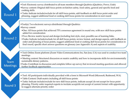 3.1. Modified e-Delphi Consensus and Refinement of Food and Cooking Skill Focus Points