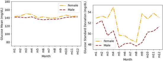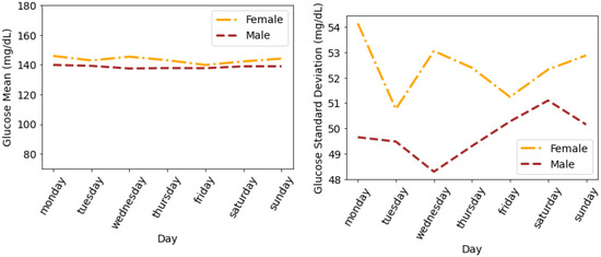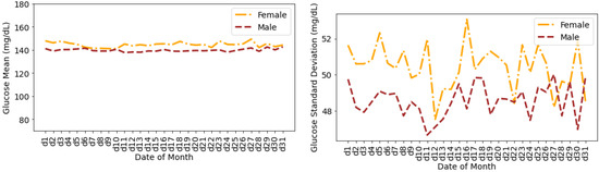 - The first in-depth timeseries analysis for glucose variability outcomes and data-driven comparative analysis of the outcomes in open-source AID users based on self-reported population genders. We demonstrate some gender-wise differences in glucose mean and distribution during the times of a day, days of a week and month, and months of a year.