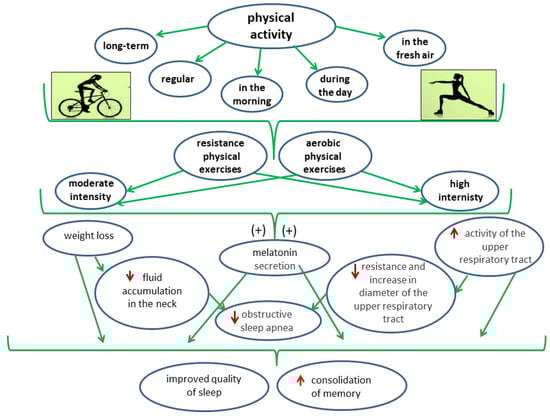 Sleep is a natural and reversible condition that is controlled primarily by neurobiological processes, and it is a physiological part of human life that is necessary to the maintenance of health and wellbeing [1,2]. Sleep is associated with a reduction in the perception of external stimuli and the cessation of motor activity [1]. The quality of sleep is influenced by many factors, such as diet [3], physical activity [4], and genetic [5] and environmental factors [6]. Sleep has a multifactorial effect on the body: it reduces energy consumption and increases the recovery of the energy storage in the brain, it regulates the adaptive and innate immune response, and it contributes to memory consolidation (the fixing of acquired information in the brain) [2,7,8]. Sleep disorders are associated with the onset and progression of many different diseases, which include cardiovascular disease, depression, and cancer [9,10,11]. Sleep disorders also increase the risk of infectious diseases [12,13,14,15].