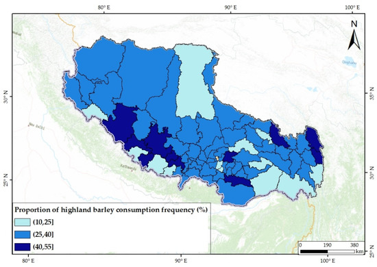 Mean values of the proportion of highland barley consumption frequency of counties.