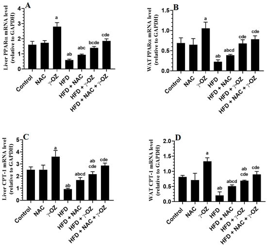 3.6. Changes in mRNA Levels of PPARα and CPT-1