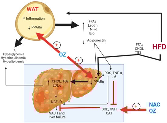 Chicago/Turabian StyleAlwadani, Ashwag H., Soheir A. Almasri, Amal A. Aloud, Nawal A. Albadr, Ghedeir M. Alshammari, and Mohammed Abdo Yahya. 2023. "The Synergistic Protective Effect of γ-Oryzanol (OZ) and N-Acetylcysteine (NAC) against Experimentally Induced NAFLD in Rats Entails Hypoglycemic, Antioxidant, and PPARα Stimulatory Effects" Nutrients 15, no. 1: 106. https://doi.org/10.3390/nu15010106