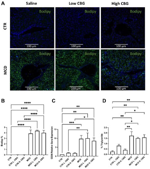 3.2. CBG Treatment Did Not Change the Steatosis Caused by MCD Diet